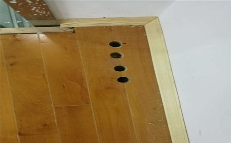 2、看风雨操场木地板的边长是否直,其方法是:取4块相同地板,铺在玻璃上或较平整的地面上,拼装起来后看其是否合缝。